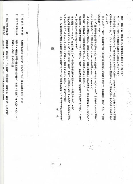 関東大震災朝鮮人碑に関する重要な書類を入手する事が