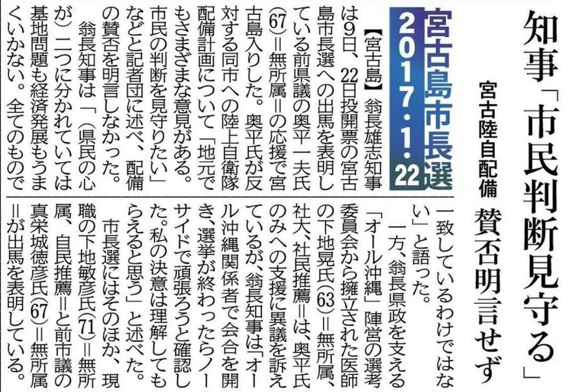 沖縄二紙は同一のスタンスだと思っていました。しかし、このブログで引用している記事では沖縄タイムスは各候補者を平等に扱っています。