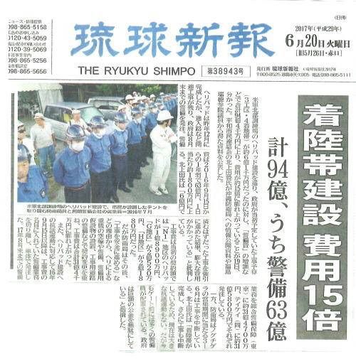 契約の際は工期14ヶ月とされていたのだが、安倍首相が国会の所信表明演説で「年内完成」を打ち上げたことにより、実質的には工期4ヶ月ほどでの完成を強いられることとなった。そのために、現場では何が行われたか? 県外から500名もの機動隊を導入して弾圧を強化し、多くの違法行為を続けて工事を強行し、ヤンバルの自然に取り返しのつかない被害を与えたのである。そのために100億円近くもの巨額の費用が使われたのだから決して許されない。